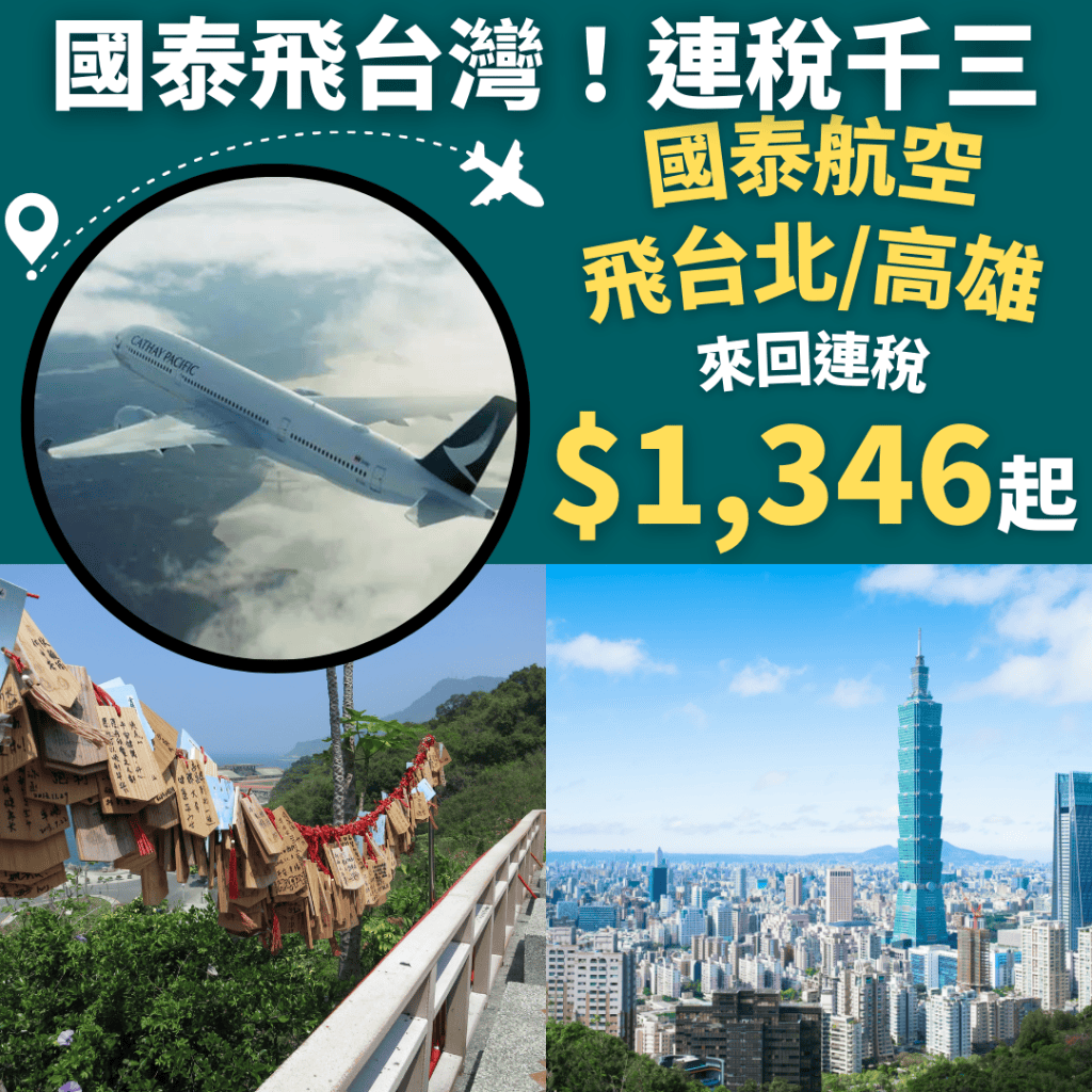 國泰飛台灣!連稅千三!暑假旺季都有!12月31日前出發!香港飛台北/高雄來回連稅只需$1,346起 – 國泰航空 (優惠至3月5日)