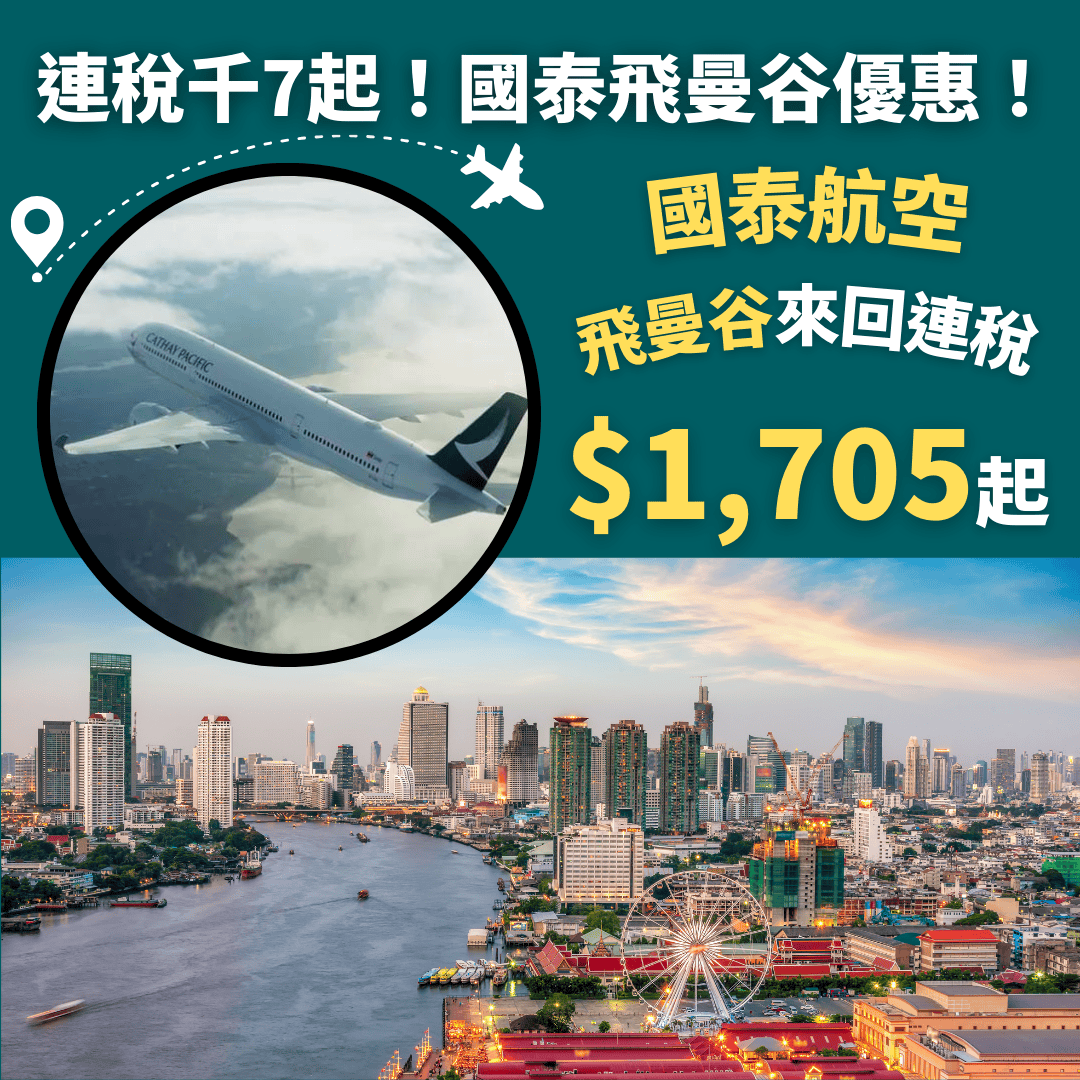 國泰飛曼谷優惠!連稅千七!暑假旺季出發都有!12月31日前出發!香港飛曼谷來回連稅只需$1,740起 – 國泰航空 (優惠至3月5日)