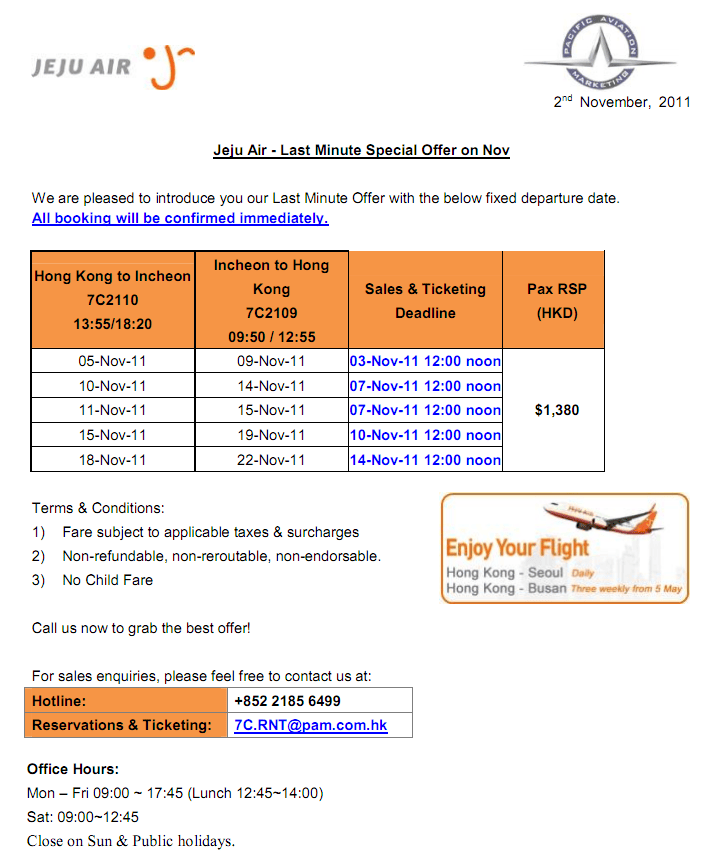 秒殺優惠 香港往返韓國首爾只需$1,380 – 濟州航空 (至11月14日)
