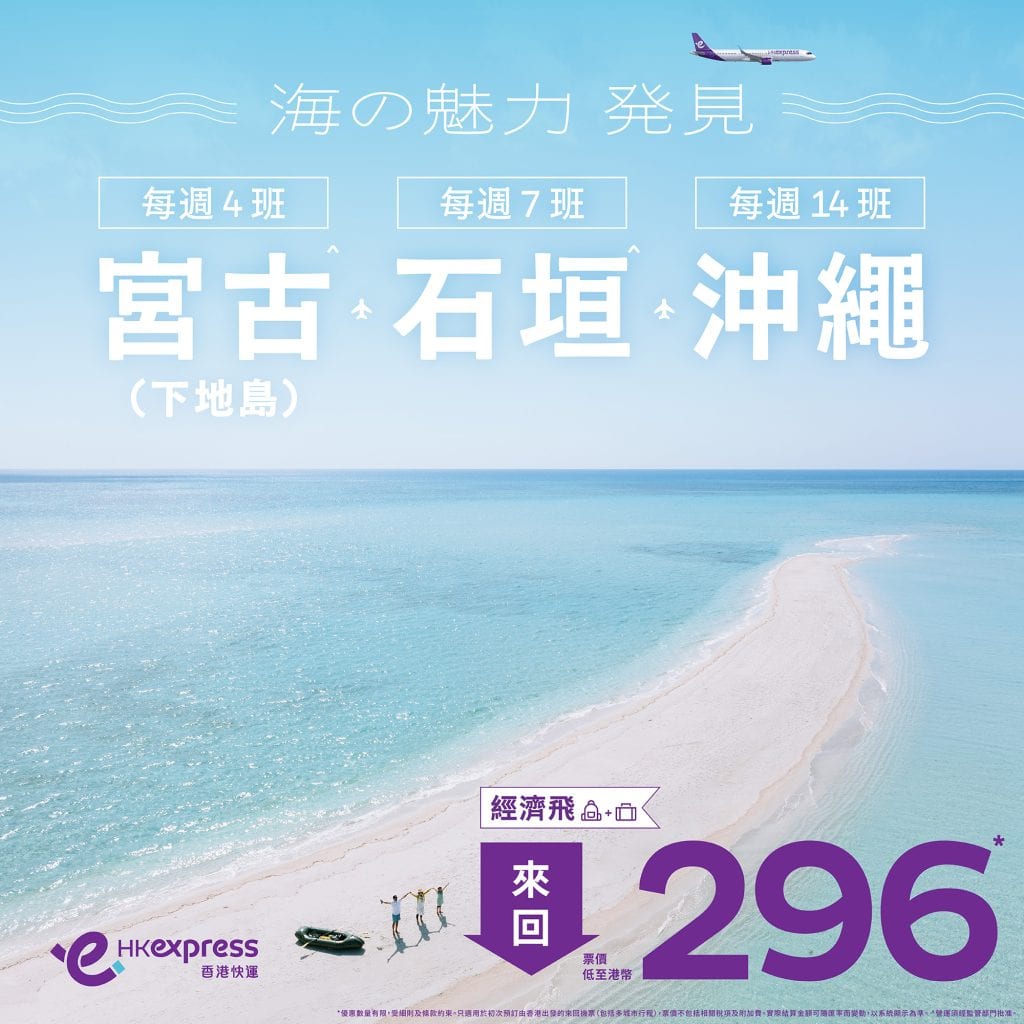 香港直飛宮古(下地島)/石垣/沖繩單程只需$98起