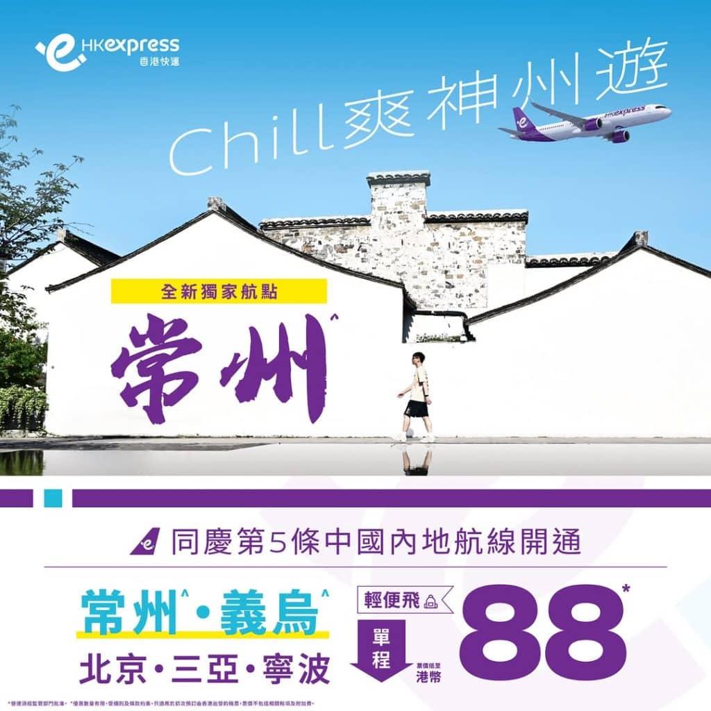 HK Express再開新航線!$88飛江蘇常州!5月23日開航!香港飛北京/寧波/三亞/義烏/常州單程只需$88起 – HK Express (優惠至4月7日)