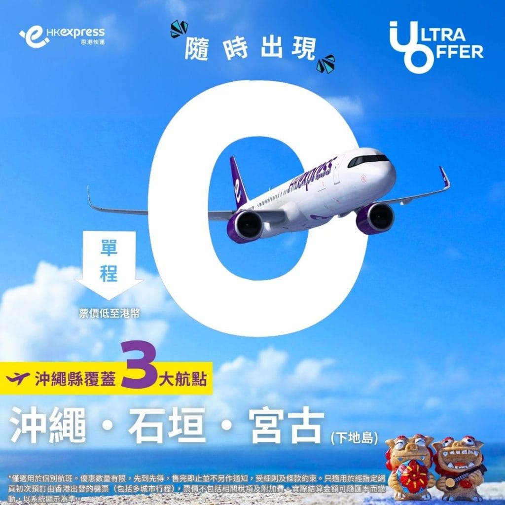 嘩!係$0機票!HK Express還擊AirAsia!$0飛沖繩/石垣/宮古!暑假旺季都有平! – HK Express (優惠至4月10日11:45pm)