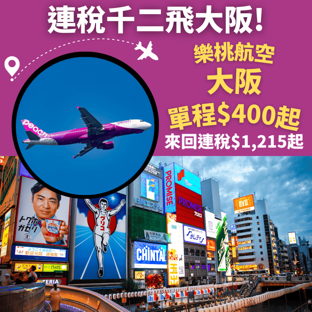 樂桃大阪SALE啦!連稅千二飛大阪!