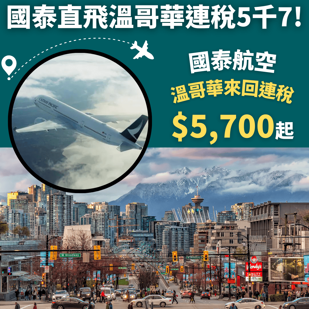 嘩!國泰跟減!直飛溫哥華連稅5千7起!12月31日前出發!香港直飛溫哥華來回連稅只需$5,700起 – 國泰航空 (優惠至4月30日)