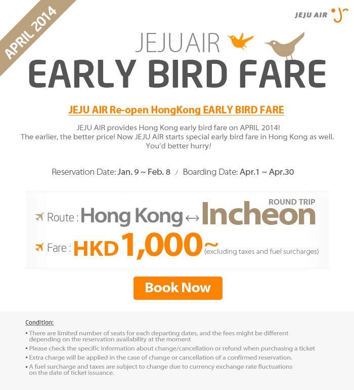 濟州航空岩岩推出左4月份飛首爾既早鳥優惠,當中復活節旺季竟然都有平