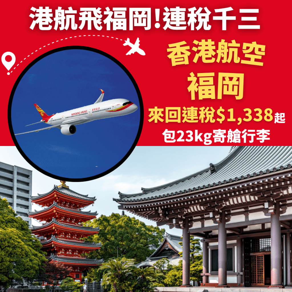 嘩!港航飛福岡全年減!連稅千三!包23kg寄艙行李!12月16日前出發!香港飛福岡來回連稅只需$1,316起 – 香港航空