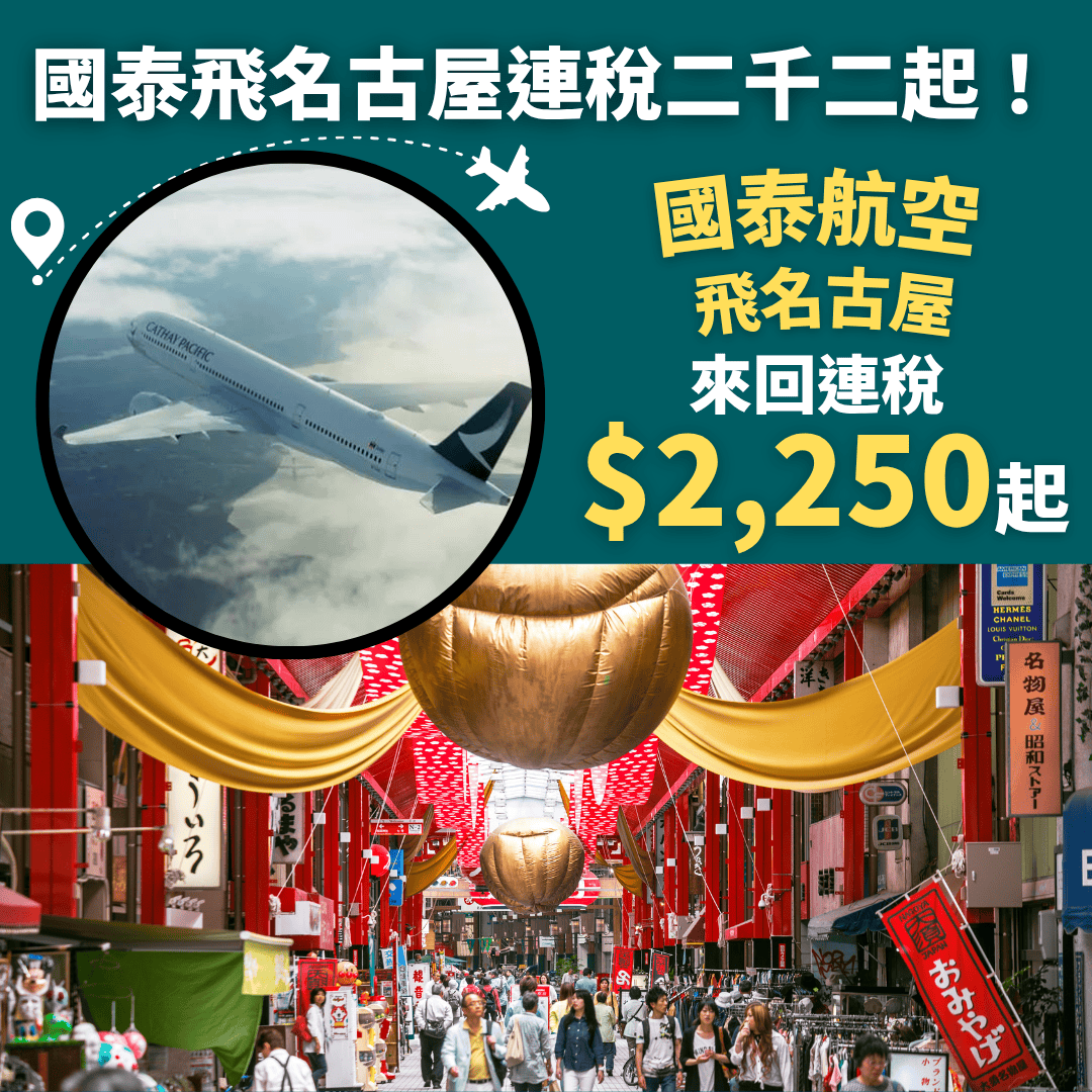 國泰飛名古屋!連稅二千二!9月30日前出發!香港飛名古屋來回連稅只需$2,250起 – 國泰航空 (優惠至6月30日)