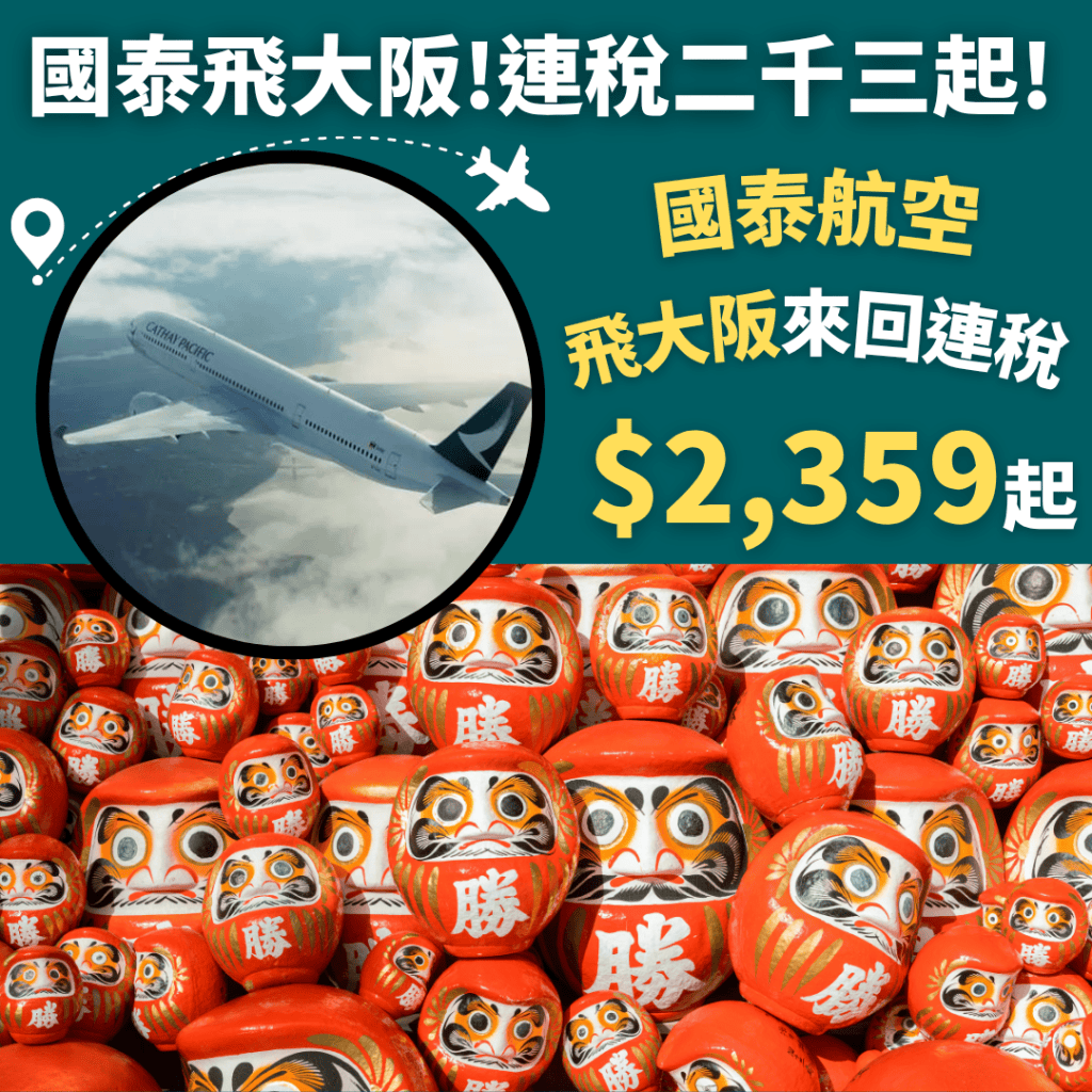 國泰連稅2千3飛大阪!7月暑假出發都有!香港飛大阪來回連稅只需$2,358起 – 國泰航空 (優惠至6月30日)