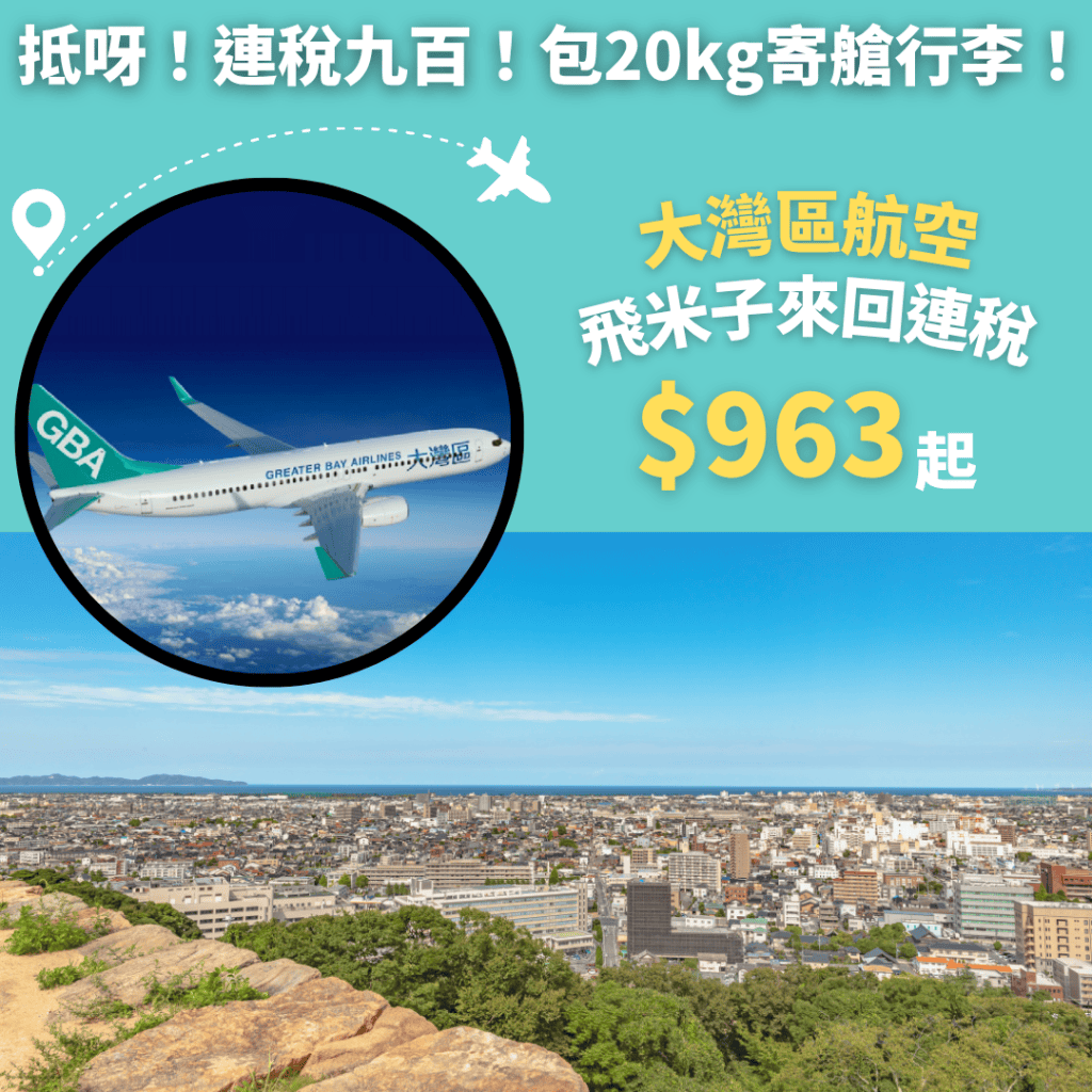 抵呀!連稅九百!包20kg寄艙行李!8月31日前出發!香港飛米子來回連稅只需$963起 – 大灣區航空 (優惠至6月20日)