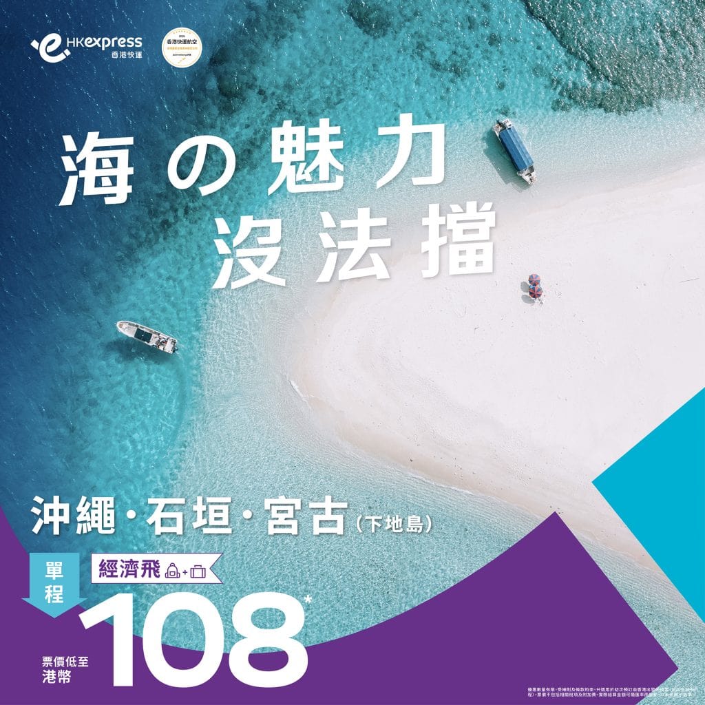 $78飛沖繩/石垣/宮古(下地島)!12月17日前出發!香港飛沖繩、石垣、宮古(下地島)單程只需$88起 – HK Express (優惠至7月27日)