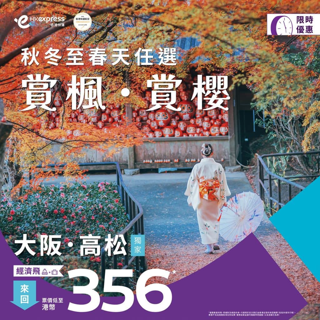 日本限時優惠!$148飛大阪/高松!明年3月15日前出發!香港飛大阪、高松單程只需$148起 – HK Express (優惠至8月10日)