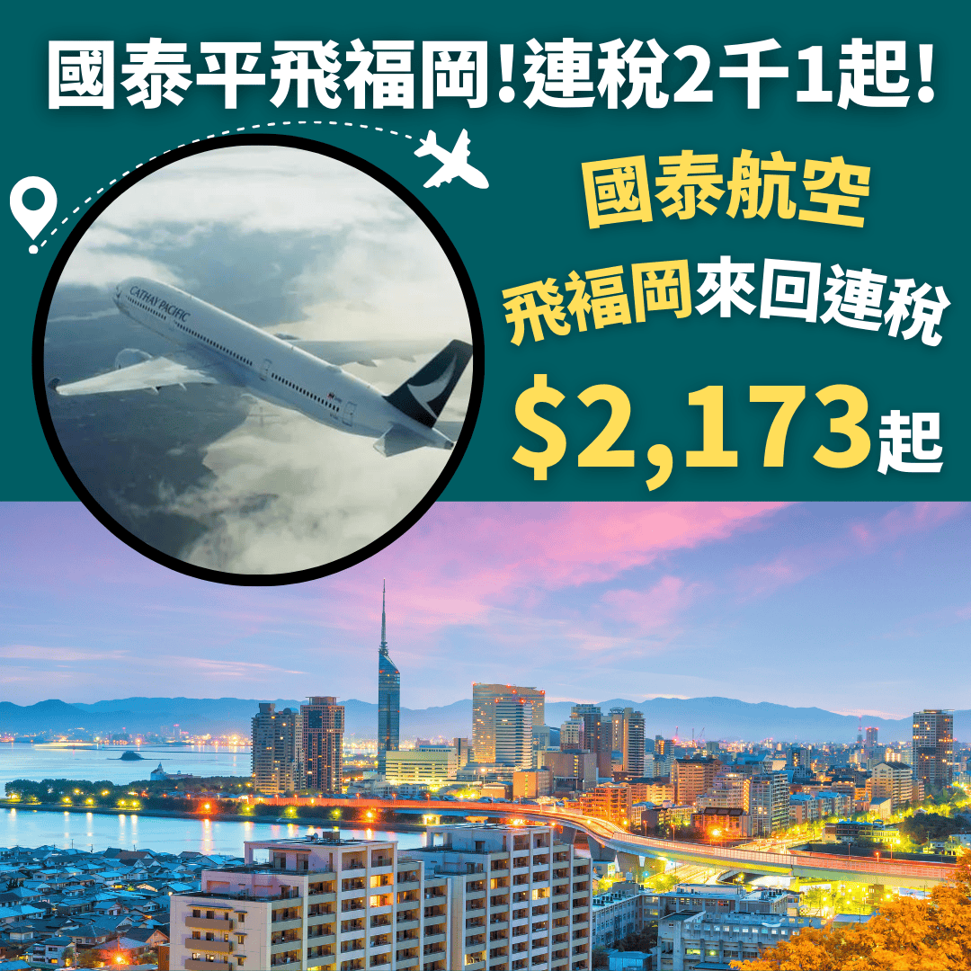 國泰平飛福岡!連稅2千1!9月17日前出發!香港飛福岡來回連稅只需$2,141起 – 國泰航空 (優惠至8月31日)