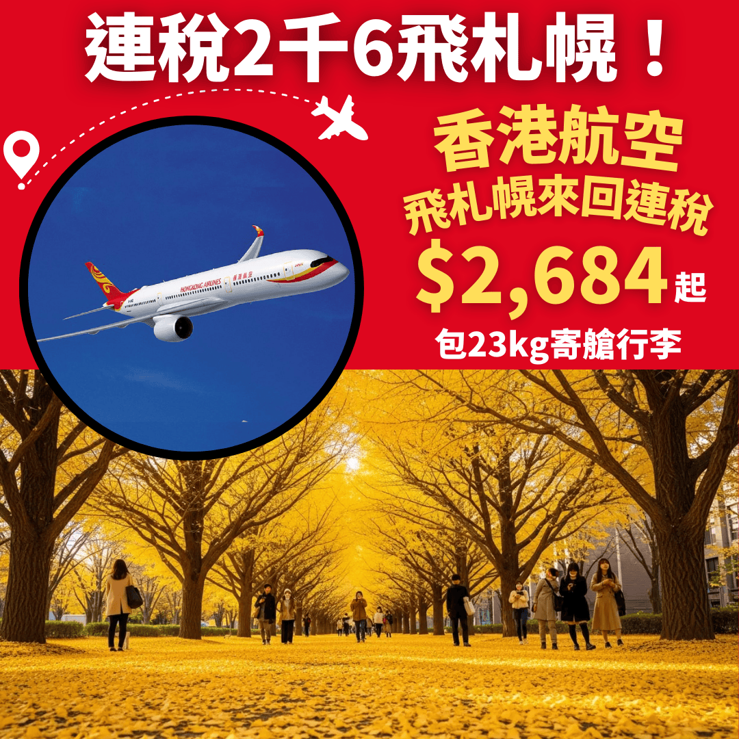 連稅2千6飛札幌!包23kg寄艙行李!香港飛札幌二人同行來回連稅每人只需$2,687起 – 香港航空