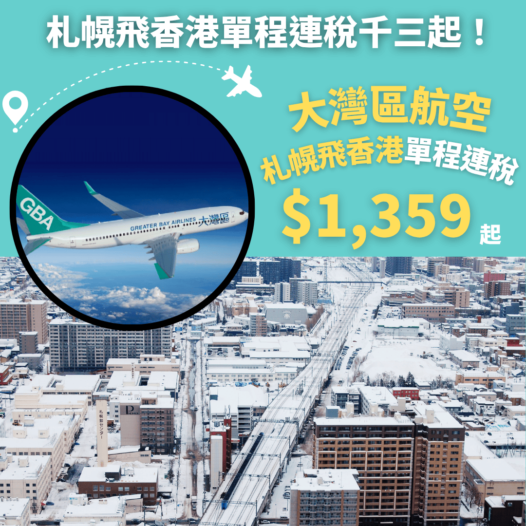 大灣區航空札幌飛香港單程優惠!連稅千三!