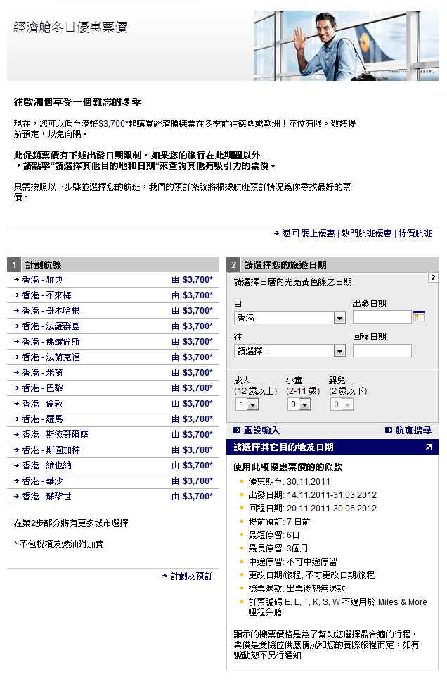 冬日優惠 香港往返德國法蘭克福或歐洲每人只需$3,700起 (至11月30日)