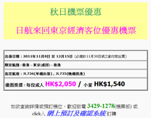 香港往返東京只需$2,050 – 日本航空 JAL (優惠至11月30日)