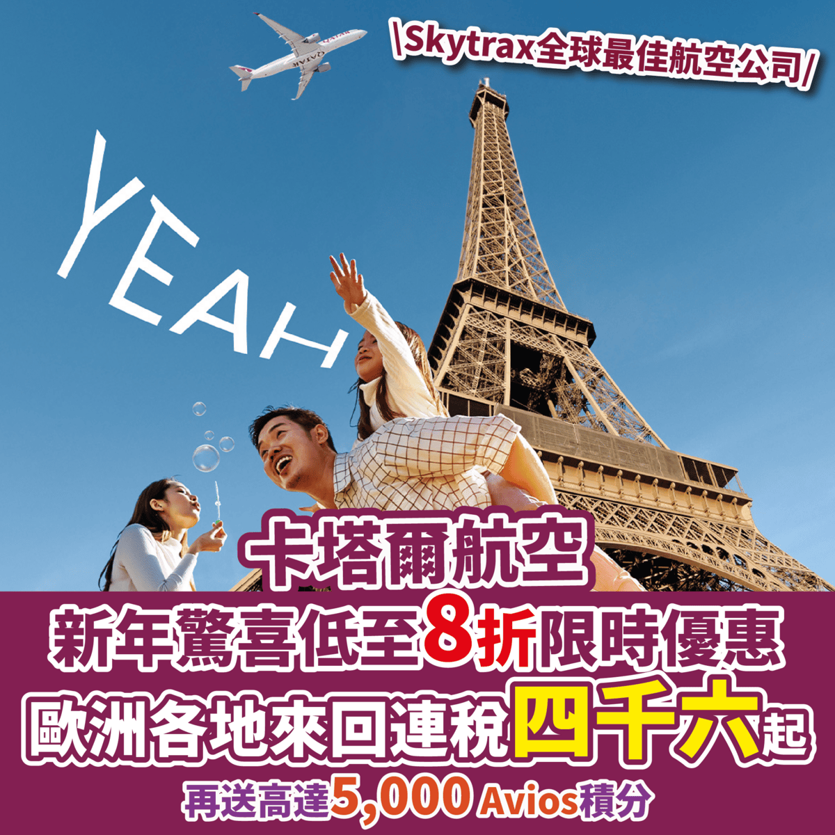 詳情:https://www.qatarairways.com/zh-hk/offers/new-year-savings.html