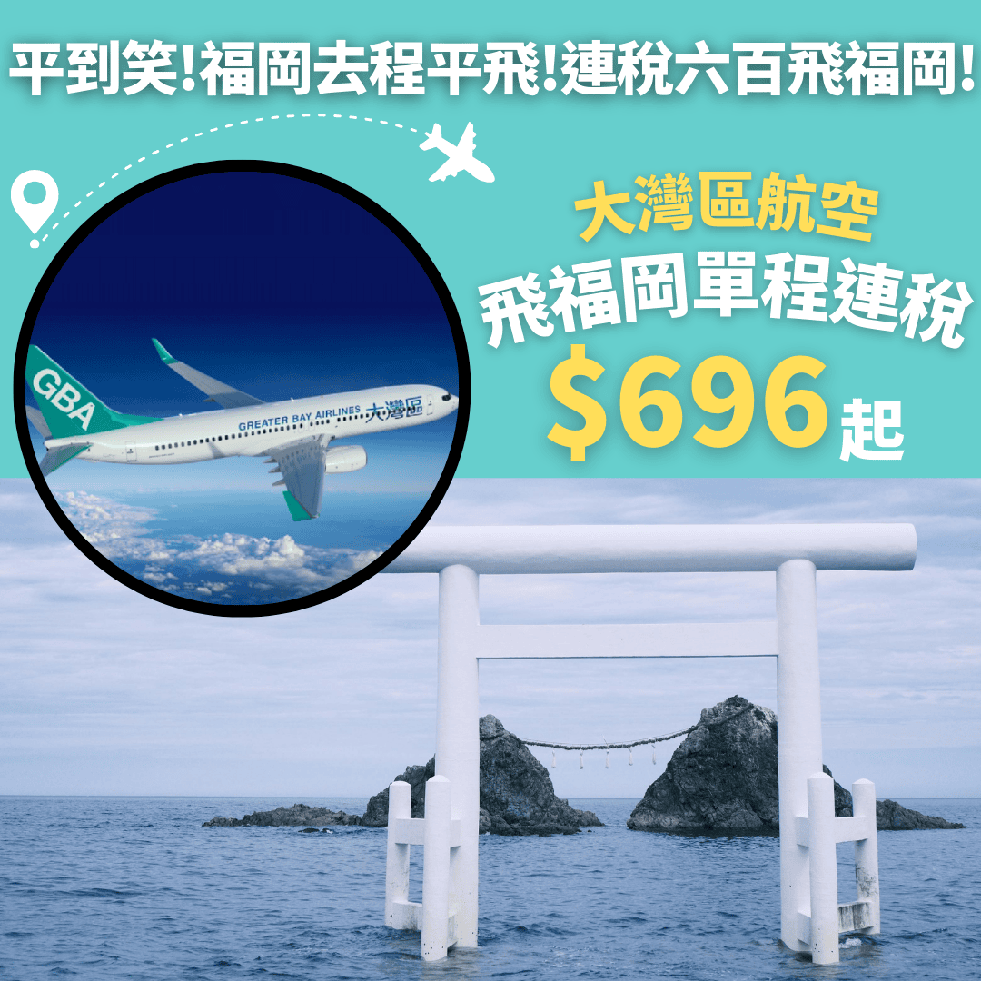 福岡去程平飛!連稅六百飛福岡!包20kg行李連稅八百!2月24日至28日出發!香港飛福岡單程連稅只需$696起 – 大灣區航空