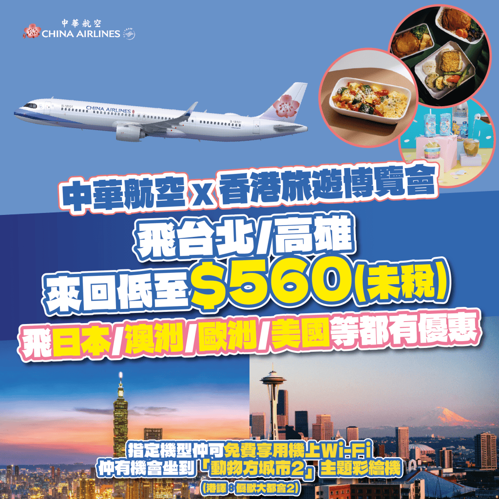 中華航空推出2026香港旅遊博覽會限時優惠!