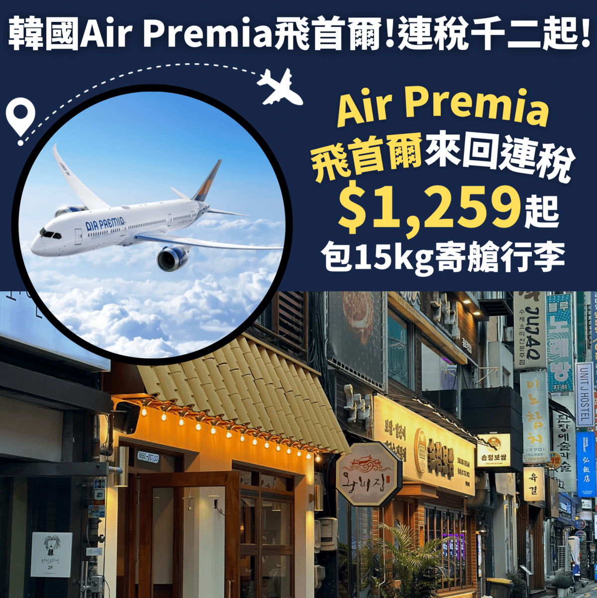 韓國Air Premia平飛首爾!連稅千二起!包15kg寄艙行李!10月23日前出發!香港飛首爾來回連稅只需$1,229起、特選經濟艙包32kg寄艙行李$1,869起 – Air Premia (優惠至1月25日)