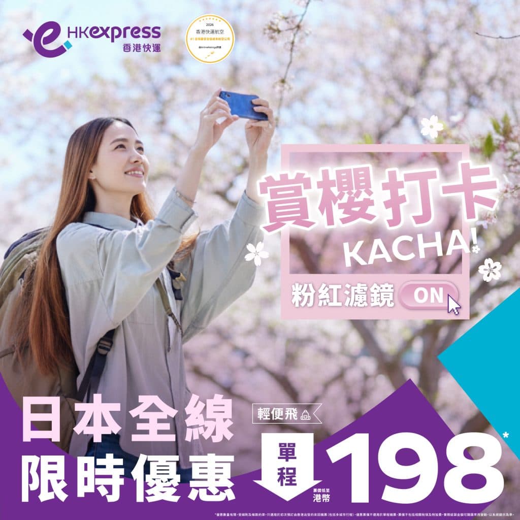 嘩!嘩!嘩!超突發!全線日本航點單程$198起!7月8日前出發!東京/大阪/福岡/名古屋/沖繩/石垣/高松/廣島/仙台/小松單程$198起 – HK Express (優惠至1月22日)