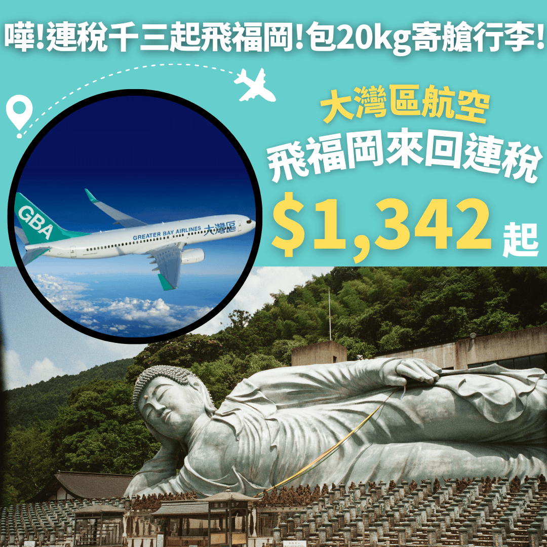 嘩!連稅千三飛福岡!包20kg寄艙行李!2月至3月出發!香港飛福岡來回連稅只需$1,342起 – 大灣區航空 (優惠至2月1日)