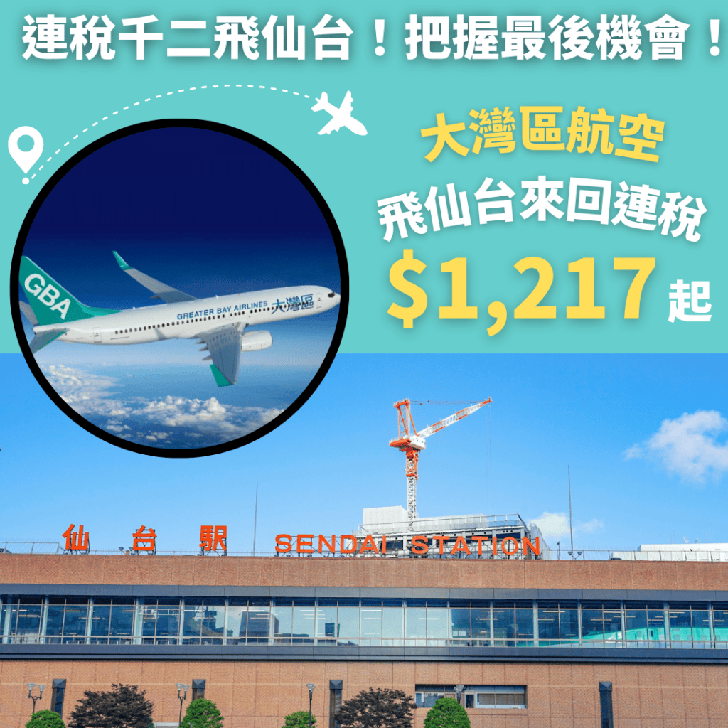 抵呀!連稅千二飛仙台!大灣區航空停飛仙台航線前最後一轉優惠!