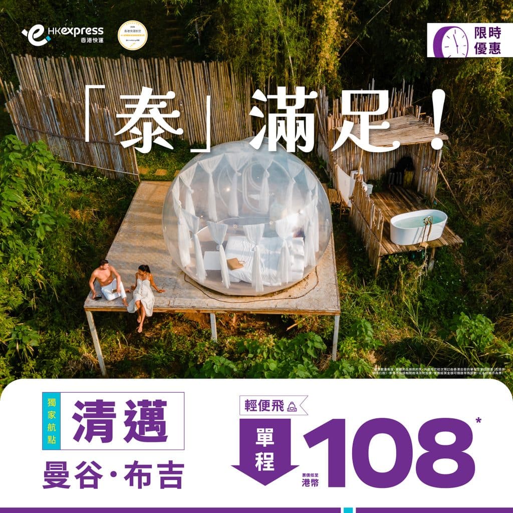 泰國限時優惠!6月30日前出發!香港飛曼谷/布吉/清邁單程只需$108起 – HK Express (優惠至1月28日)
