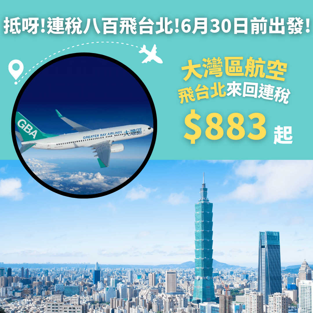 抵呀!連稅八百飛台北!6月30日前出發!香港飛台北來回連稅$883起 – 大灣區航空 (優惠至2月11日)