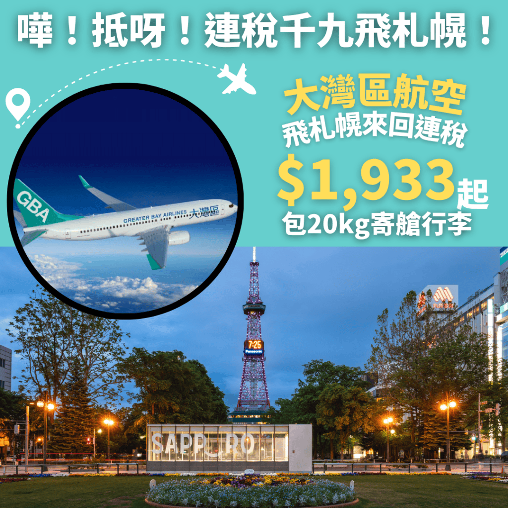 嘩!激抵呀!連稅千九飛札幌!包20kg寄艙行李!7月8日前出發!香港飛札幌來回連稅只需$1,933起 – 大灣區航空