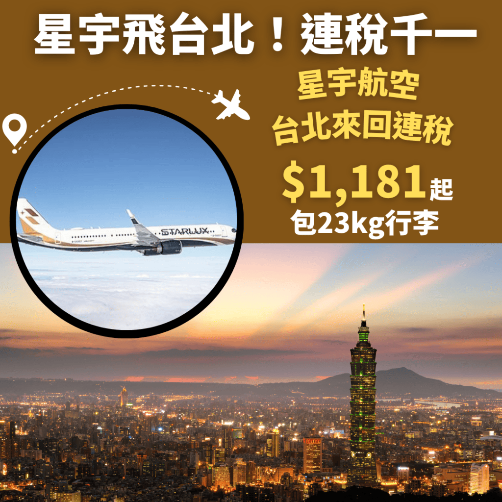 香港飛台北來回連稅只需$1,181起