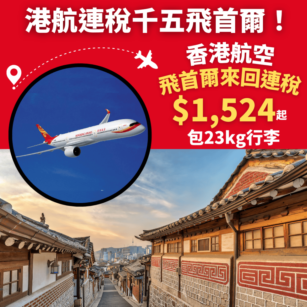 港航連稅千五飛首爾!包23kg寄艙行李!趕喺加燃油附加費前入手!7月10日前出發!香港飛首爾來回連稅只需$1,523起 – 香港航空
