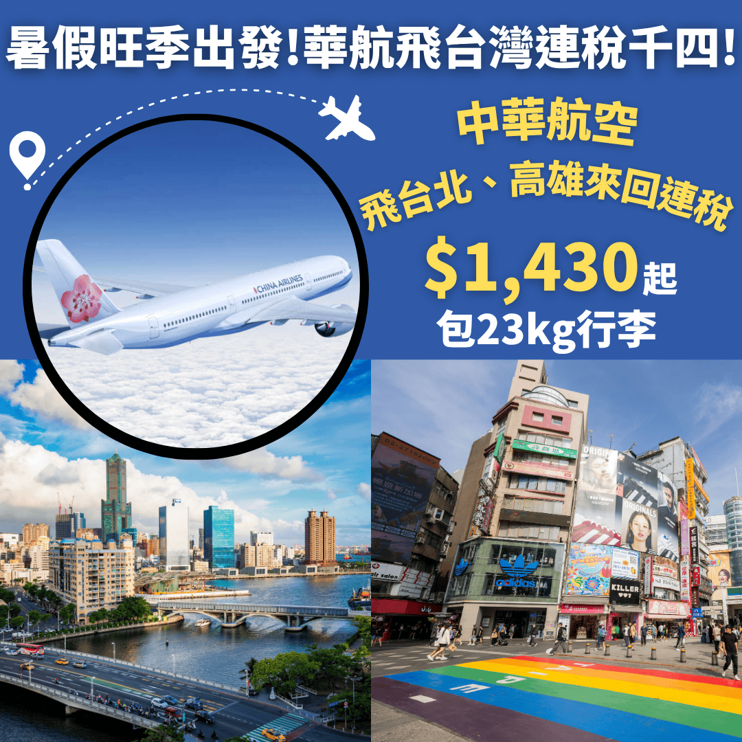 暑假旺季出發!華航飛台灣連稅千四起!香港飛台北、高雄來回連稅只需$1,474起 – 中華航空