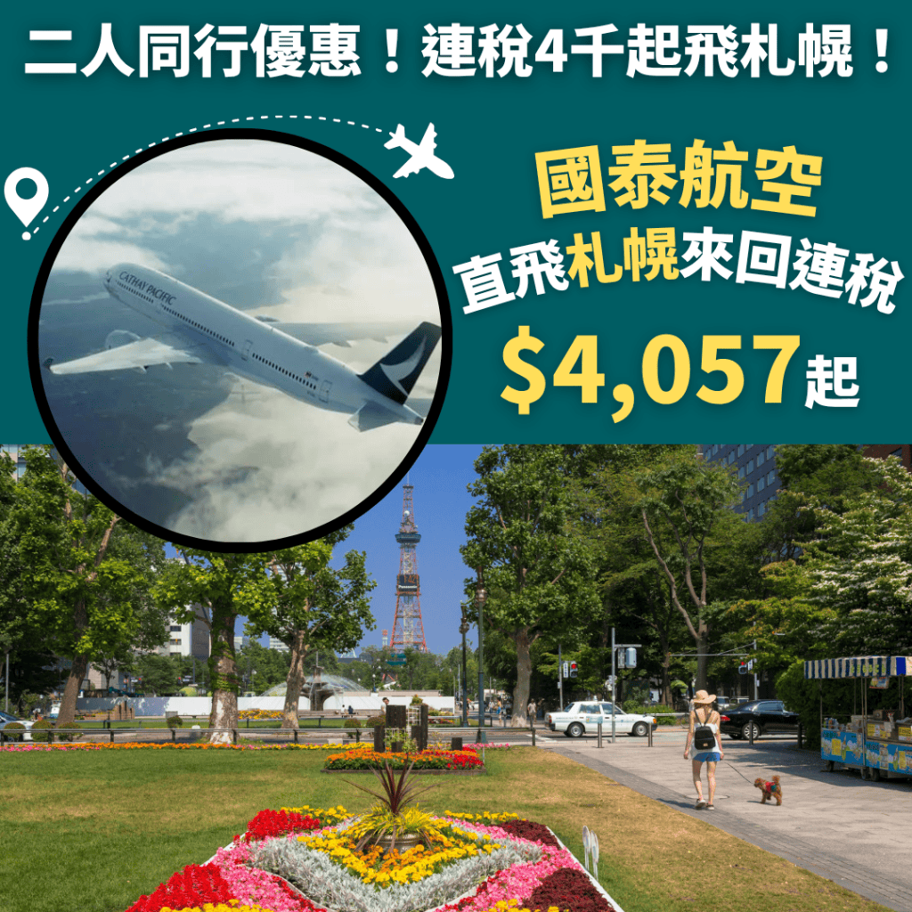 國泰飛札幌!連稅四千!7月10日前出發!香港飛札幌二人同行來回連稅每人只需$4,081起 – 國泰航空 (優惠至4月30日)