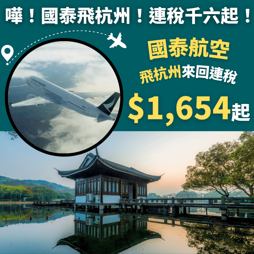 除咗飛上海,國泰飛杭州都有優惠,連稅千六!