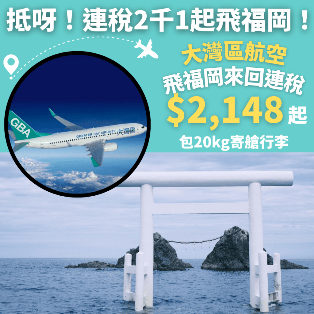 抵呀!連稅2千1起飛福岡!包20kg寄艙行李!7月6日前出發!香港飛福岡來回連稅只需$2,148起 – 大灣區航空