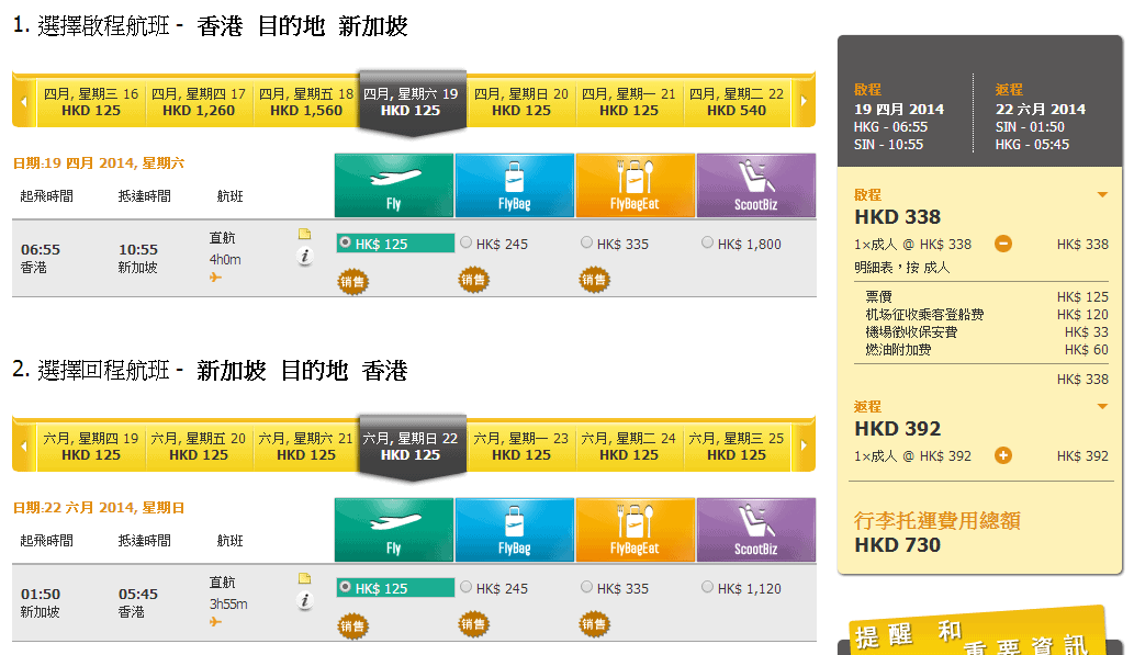 香港飛新加坡單程連稅只需$338,來回連稅$730,比上次優惠貴左少少,但都好抵