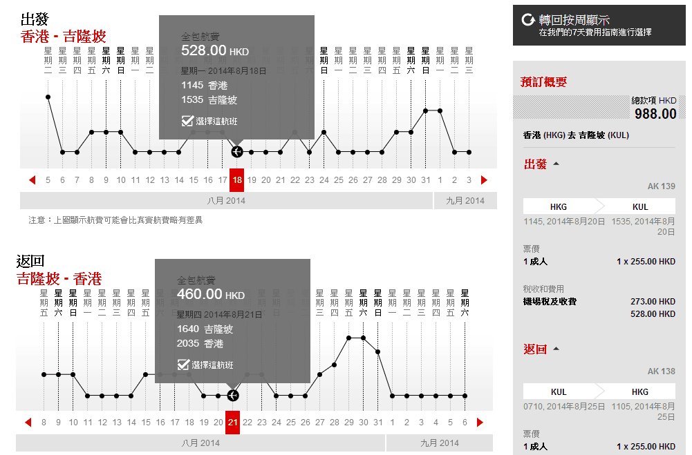 不過買平飛唔一定要等到Big Sale,岩岩發現8月暑假旺季都仲有唔少飛吉隆坡平飛