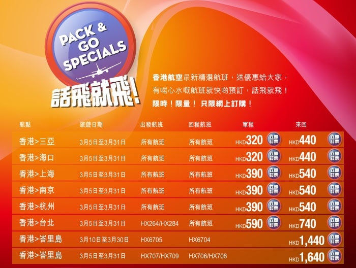 出發日期介乎3月5日至3月31日,今期峇里島同國內航點價錢都唔錯