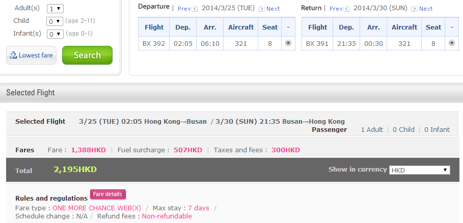 香港飛釜山優惠適用於3月份出發,而澳門飛釜山適用於3月1日至4月30日出發
