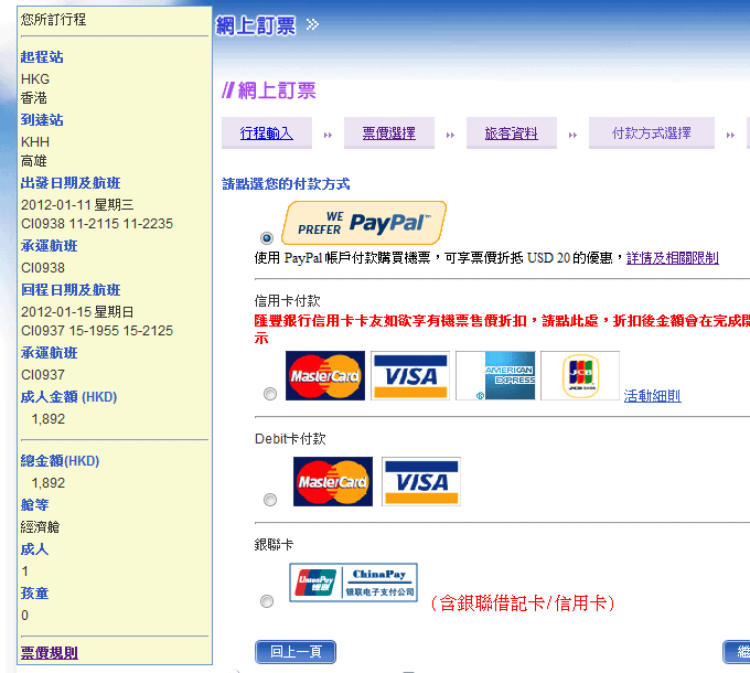 如果用埋PayPal付款仲可减 $156 – 以PayPal購買中華航空機票即減HK$156 – 中華航空 (優惠至12月31日)