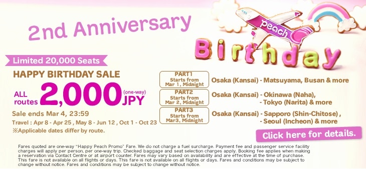 樂桃航空為左慶祝2周年,會係今晚11點推出生日大優惠