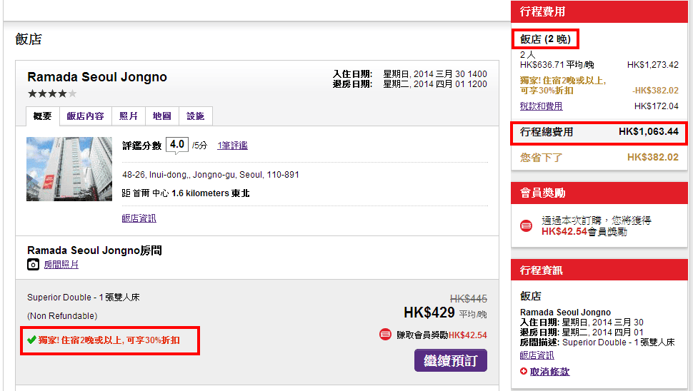 提提大家,由於呢個係會員優惠,大家須登入HotelClub帳戶先會見到“獨家! 住宿2晚或以上, 可享30%折扣”