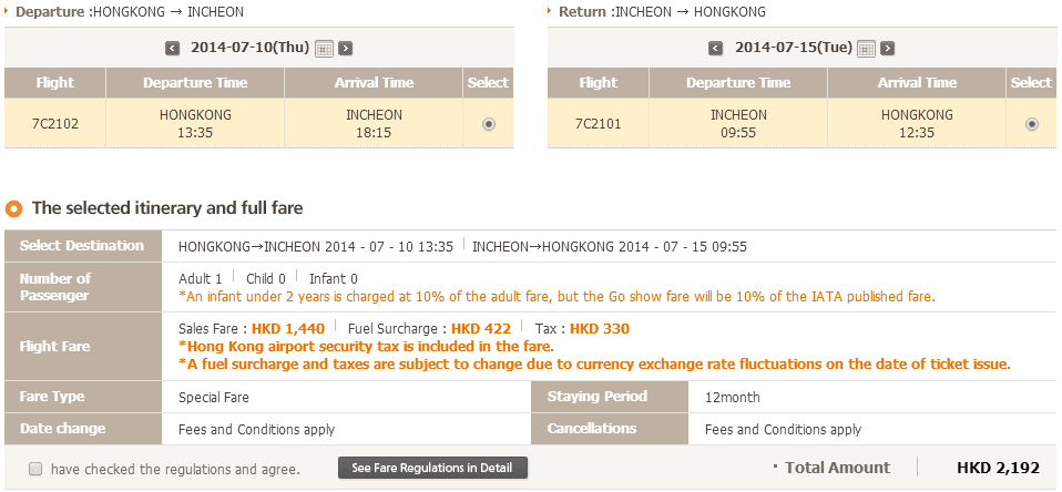 雖然出發日期由7月1日至7月31日,不過經測試$1,400平飛不多,集中係7月12日前出發
