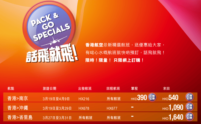 Last Minute優惠!香港往返沖繩只需$1,040,峇里島$1,590,南京$490 – 香港航空 (優惠至3月7日)