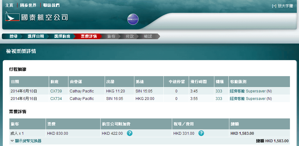 國泰官網:http://www.cathaypacific.com