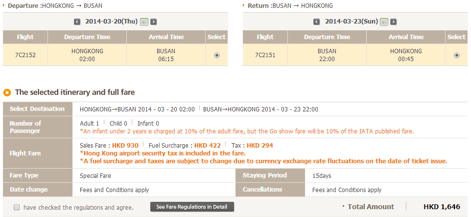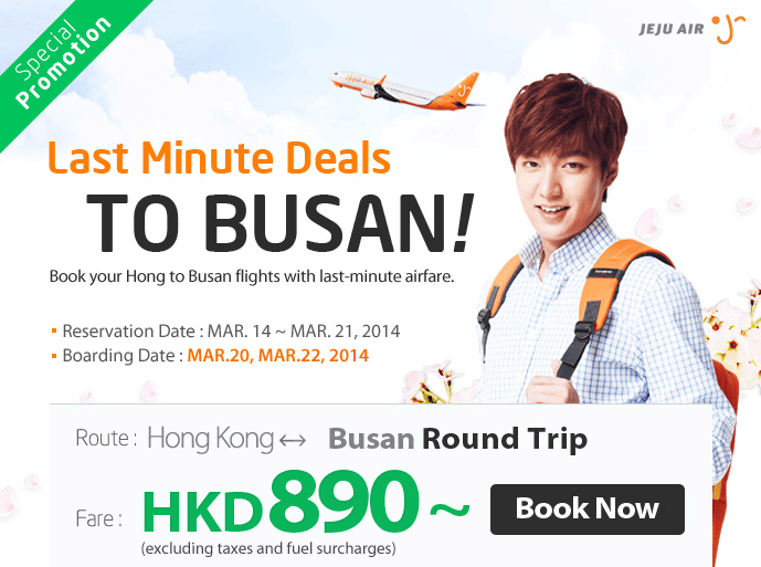 Last Minute優惠!香港飛釜山來回只需$890 – 濟州航空 (優惠至3月21日)