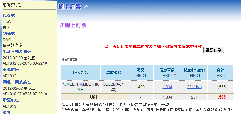 *update 2/12/2011 官網已有update $1,721包稅,用Paypal 最減$156 = $1565 http://www.china-airlines.com/hk/promotionhk/promotionhk000348.htm