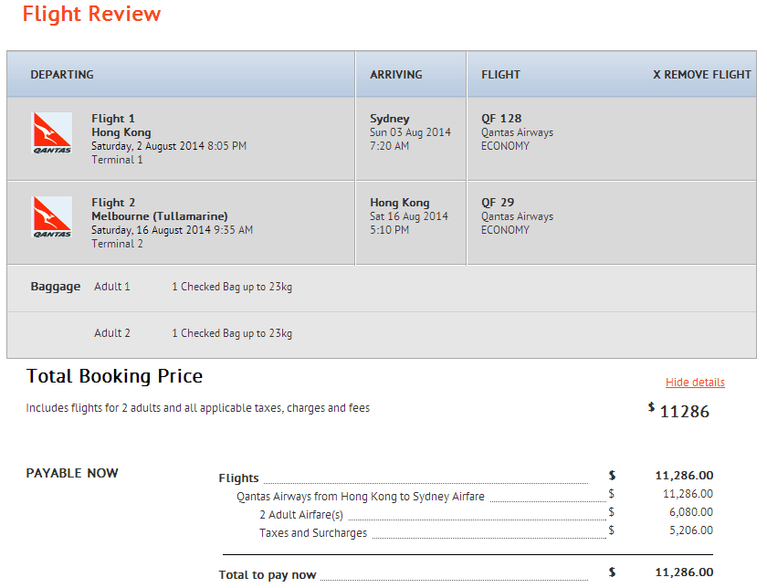 經我們測試,以悉尼8月2日出發,墨爾本8月16日返回為例