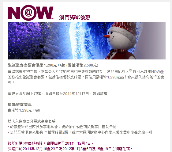 詳情:http://www.venetianmacao.com/christmaspackage/